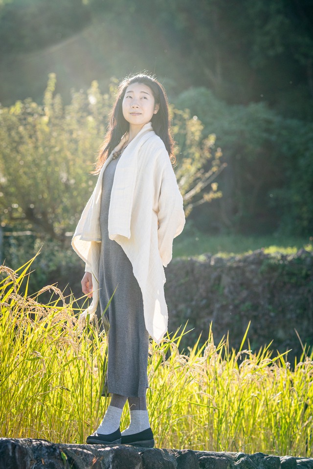 《長袖ショールJK ヘンプ麻100%》 (ダブルガーゼ) 花言葉 : 聡明 カーディガンのように気軽に羽織れ、ダブルガーゼ仕様なので、とても温かい一品です~☆ ※ウエアシリーズは、着心地の柔らかさを感じてもらうために、イメージする花の名前になっています。 サイズ Mサイズ (一般 M 対応) バスト 110cm 前丈(肩~) 90cm 後丈(肩~) 93cm ユキ丈 74cm 袖口 34cm ※写真モデルサイズ167cm