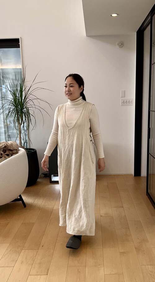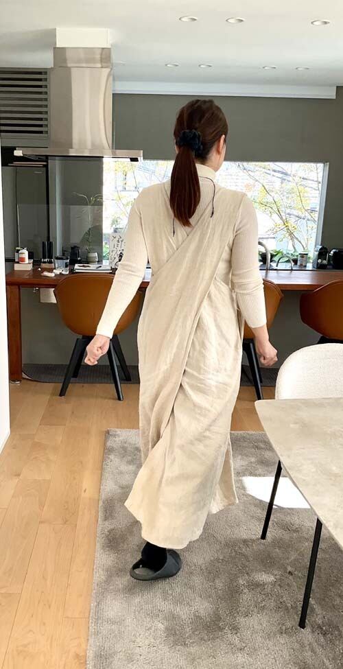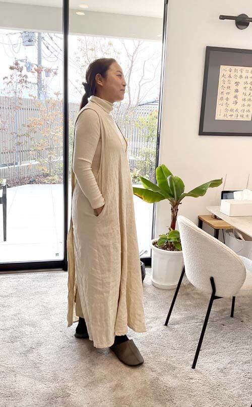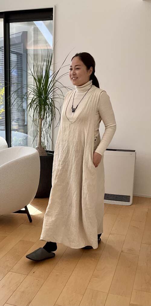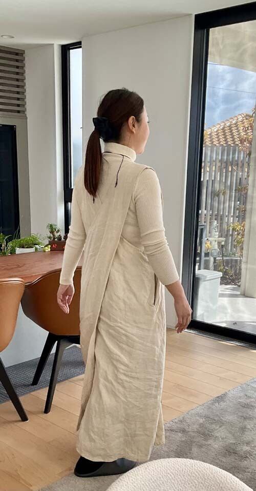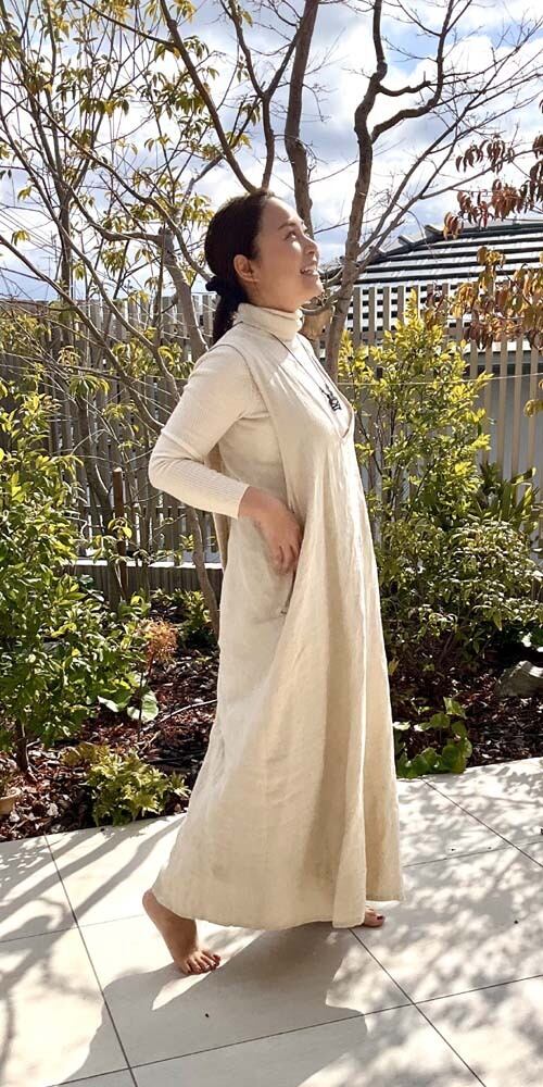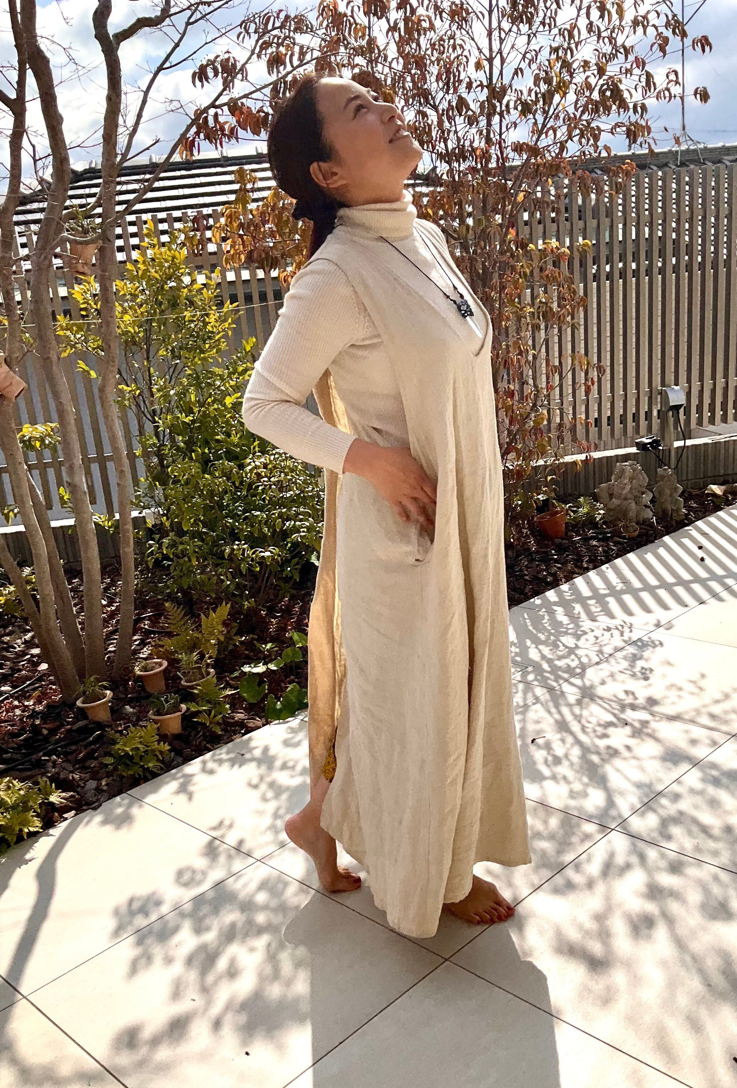 ヘンプ麻100%で作られたこのオーバードレスは、軽やかで肌触りが優しい素材感が魅力。普段使いからお出かけまで、様々なシーンで快適に過ごすことができます。自宅でも簡単に着れる着回しできるワンピース!エプロンのように簡単に愛用できる優れものです。女性らしさを引き立てる一着です。