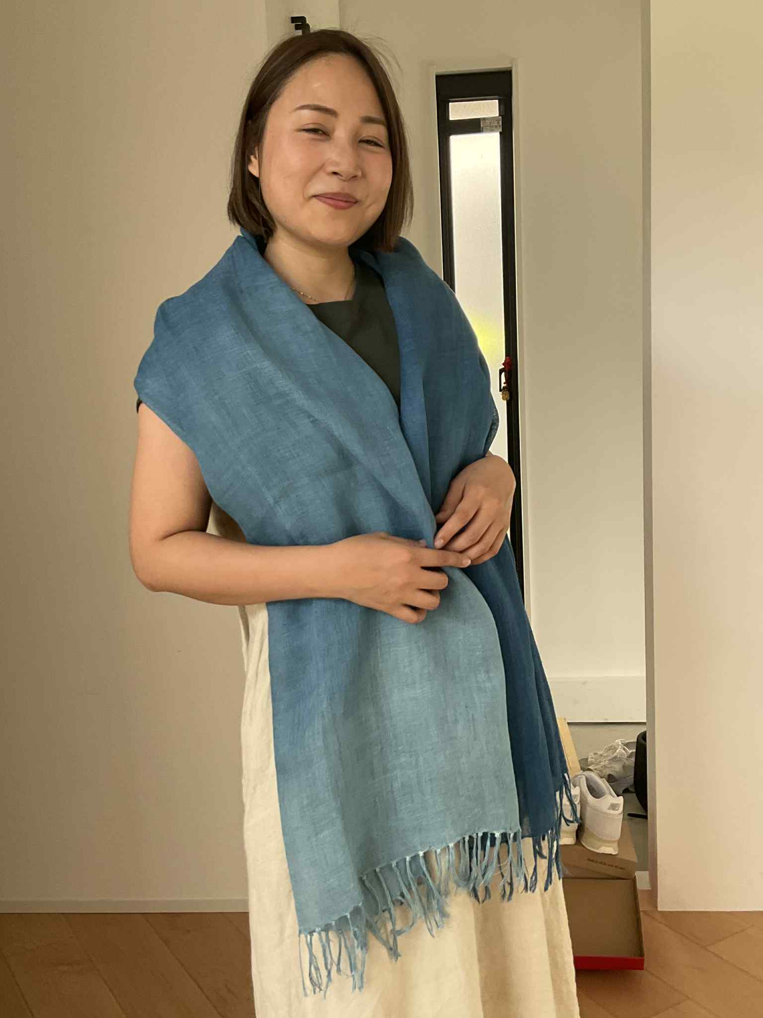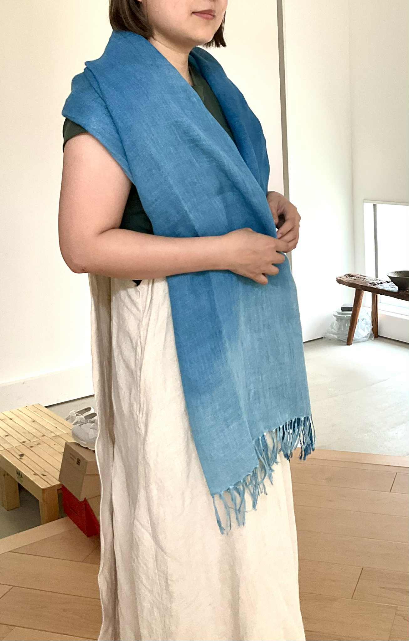 新たに藍染の美しいグラデーションが際立つ、ヘンプ麻100%の大判ストールが誕生しました!