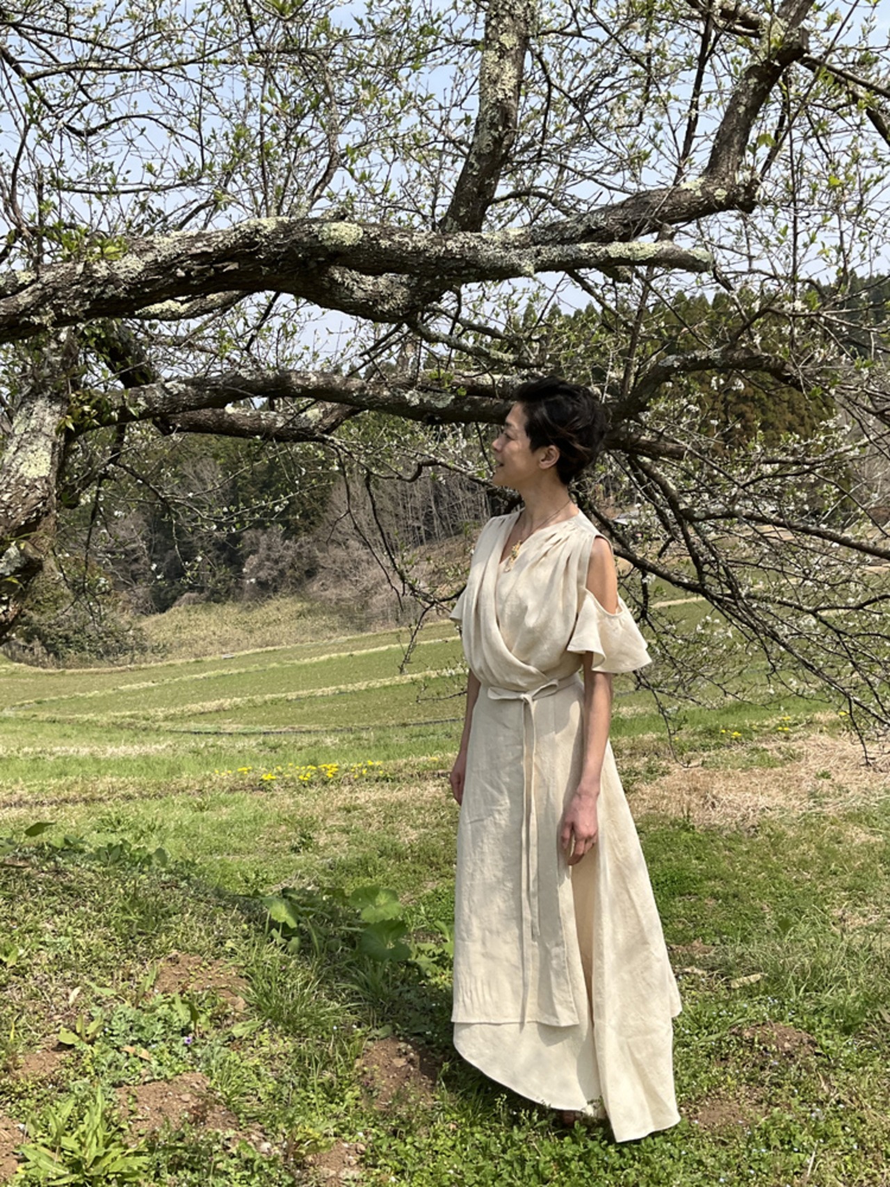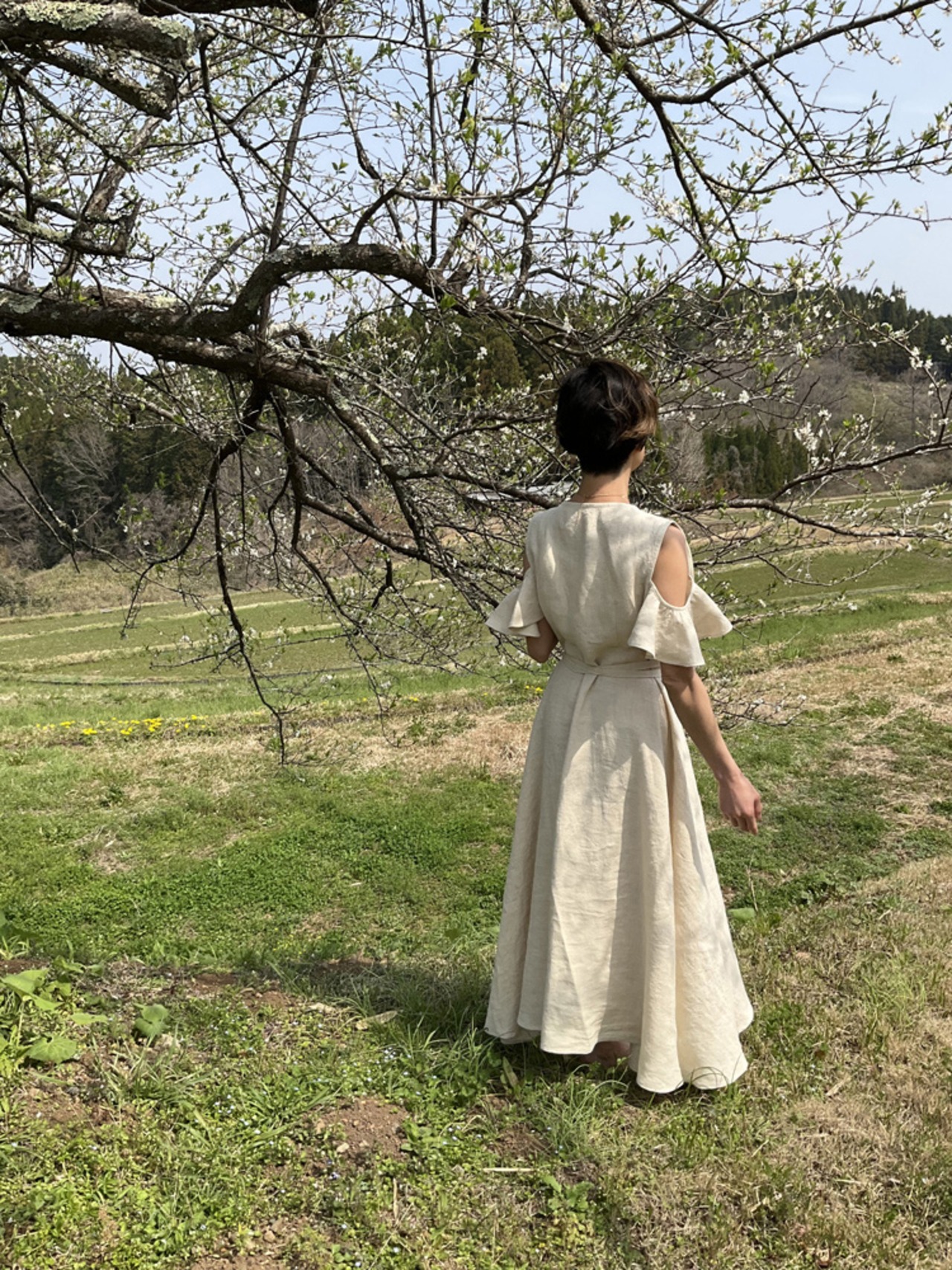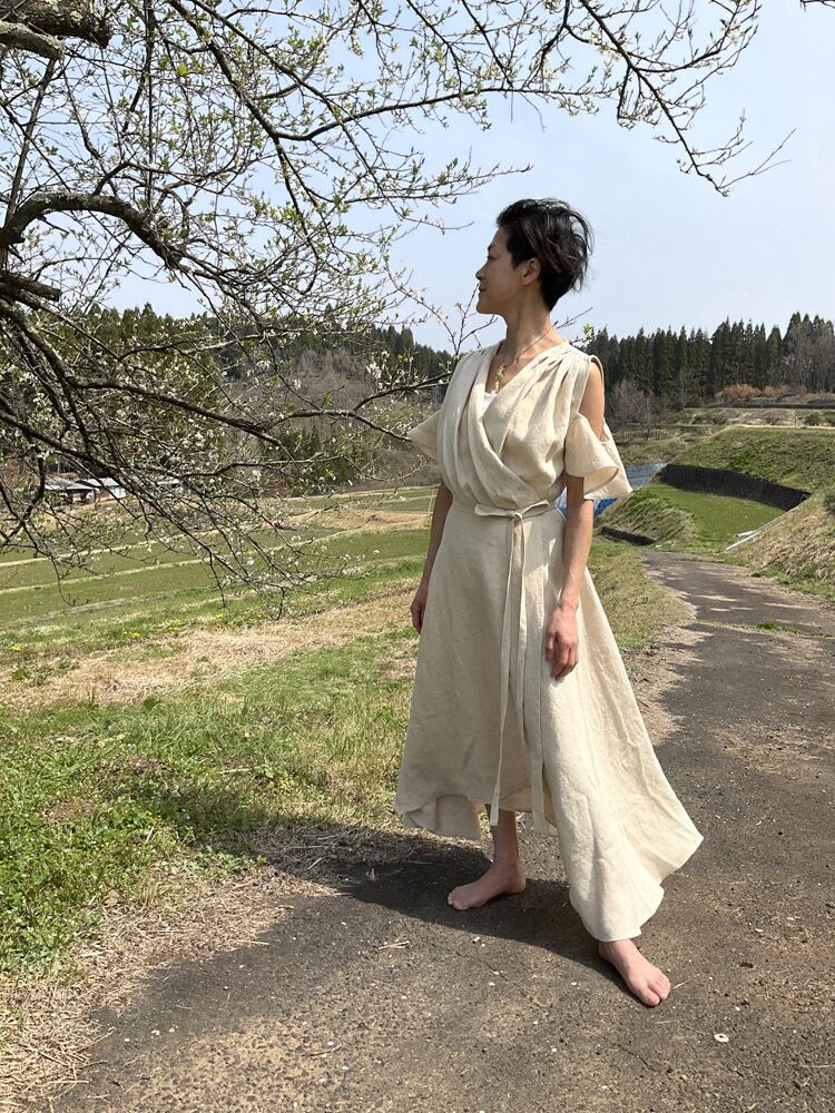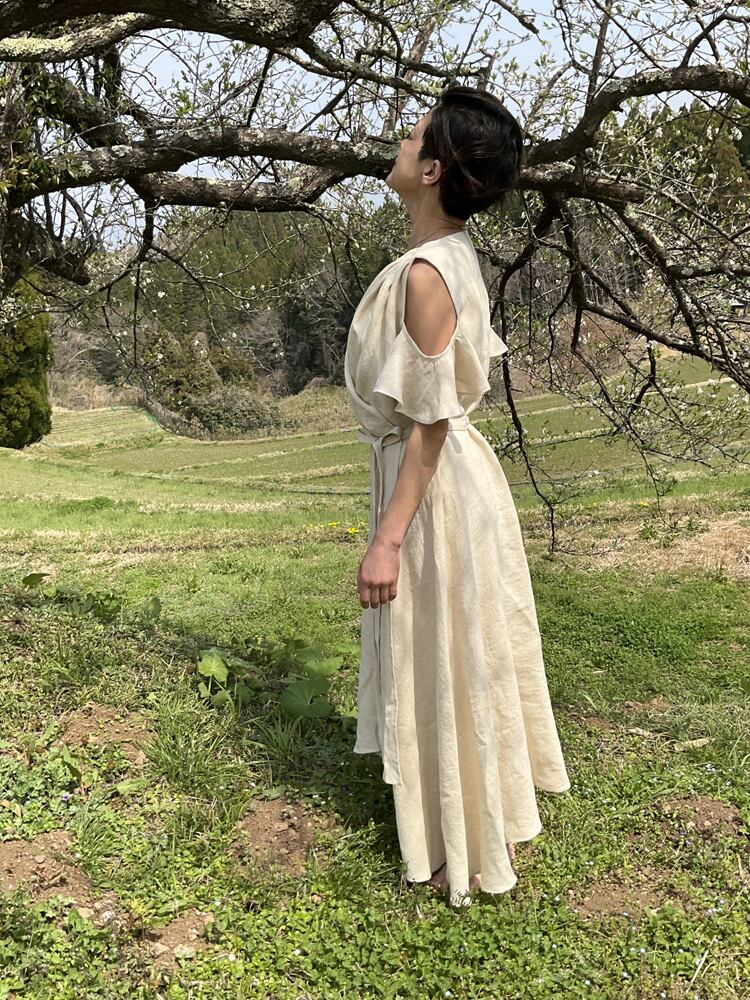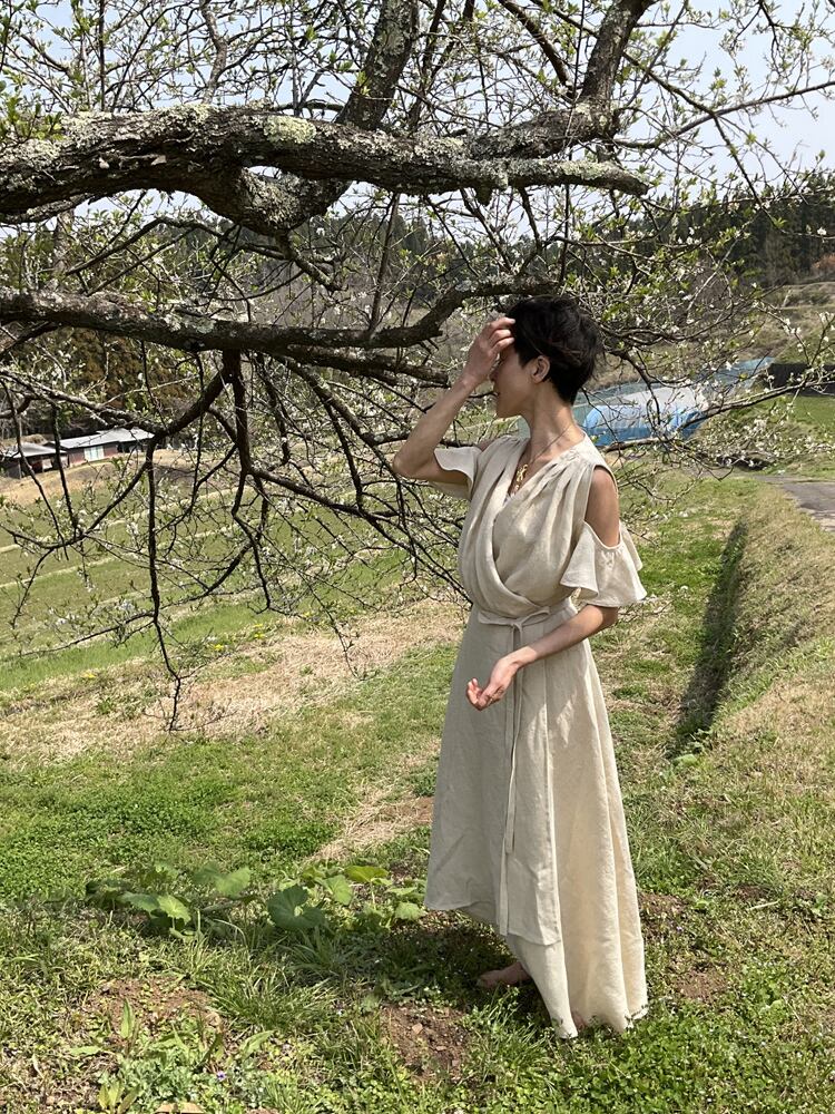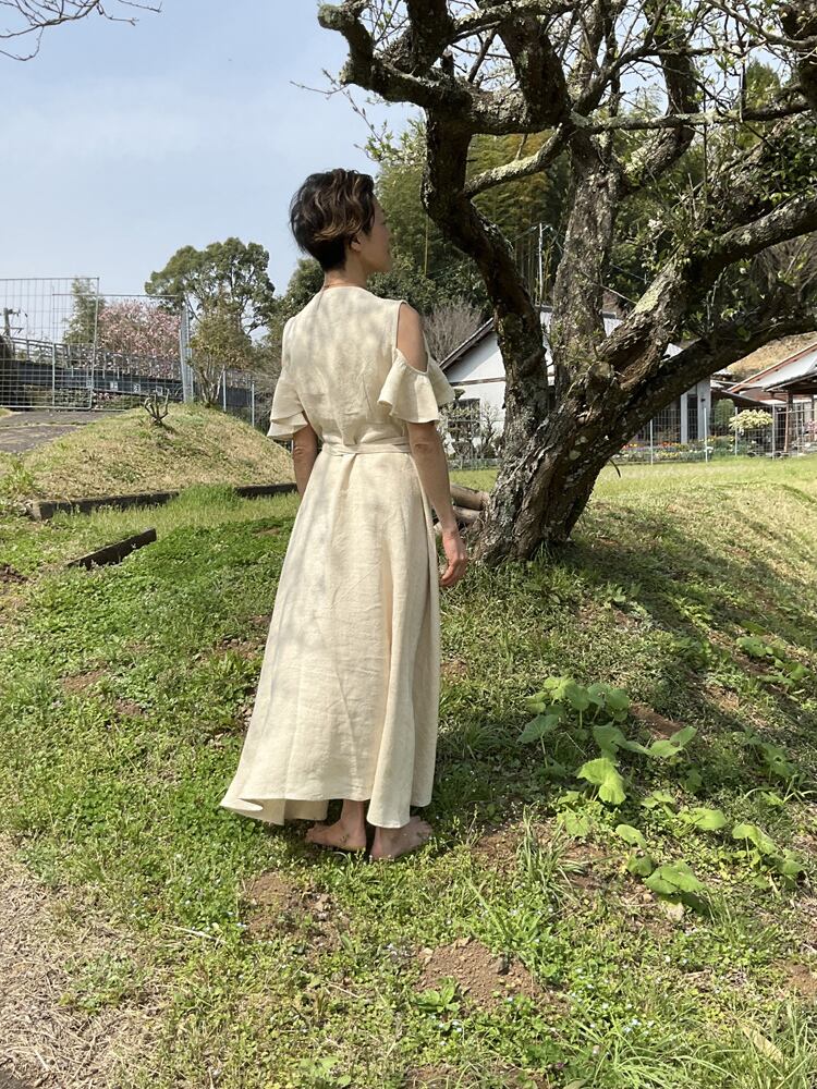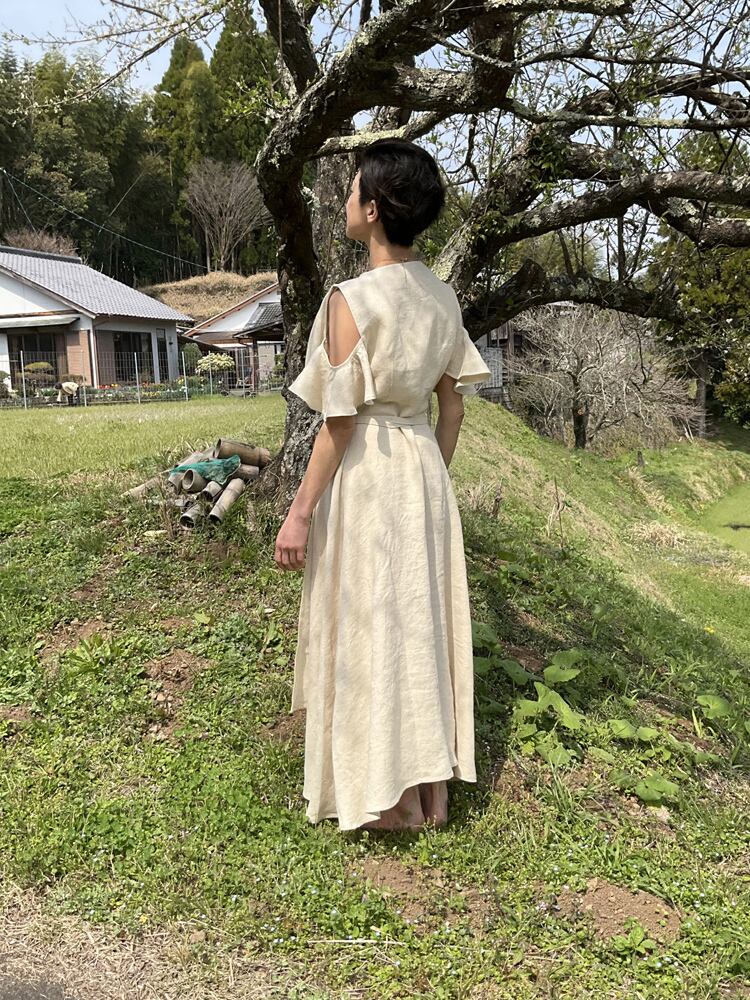 《ポピーOP ヘンプ麻100%》カシュクールリゾート袖ワンピース