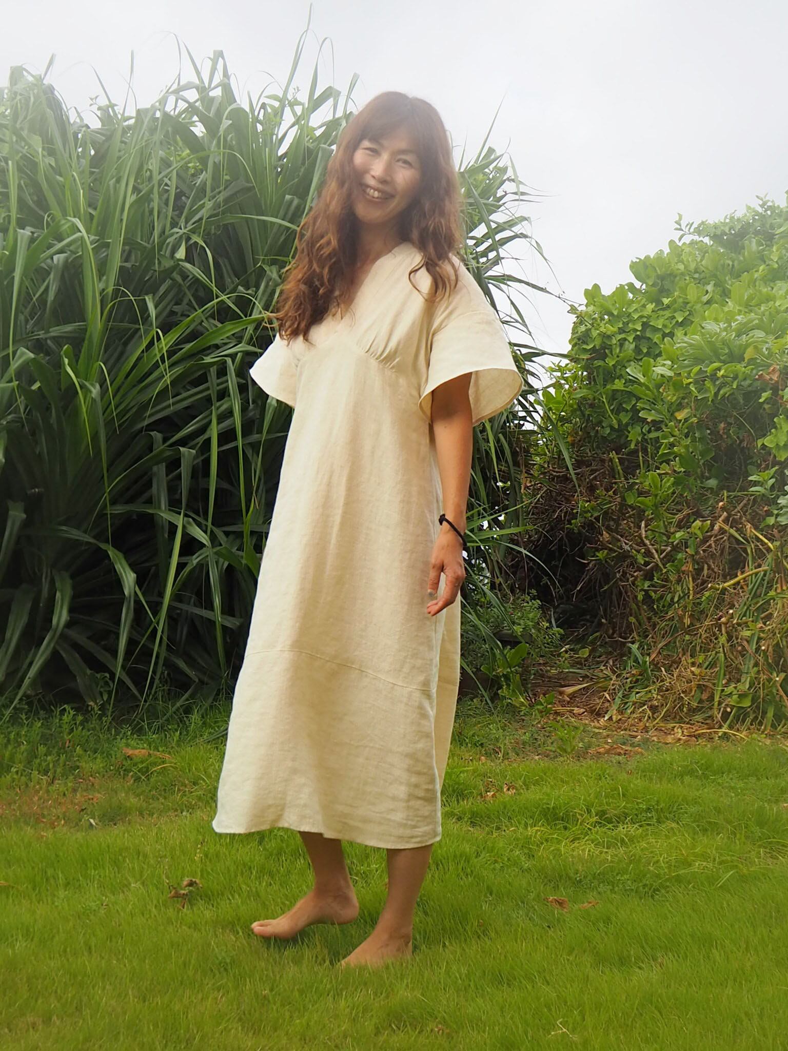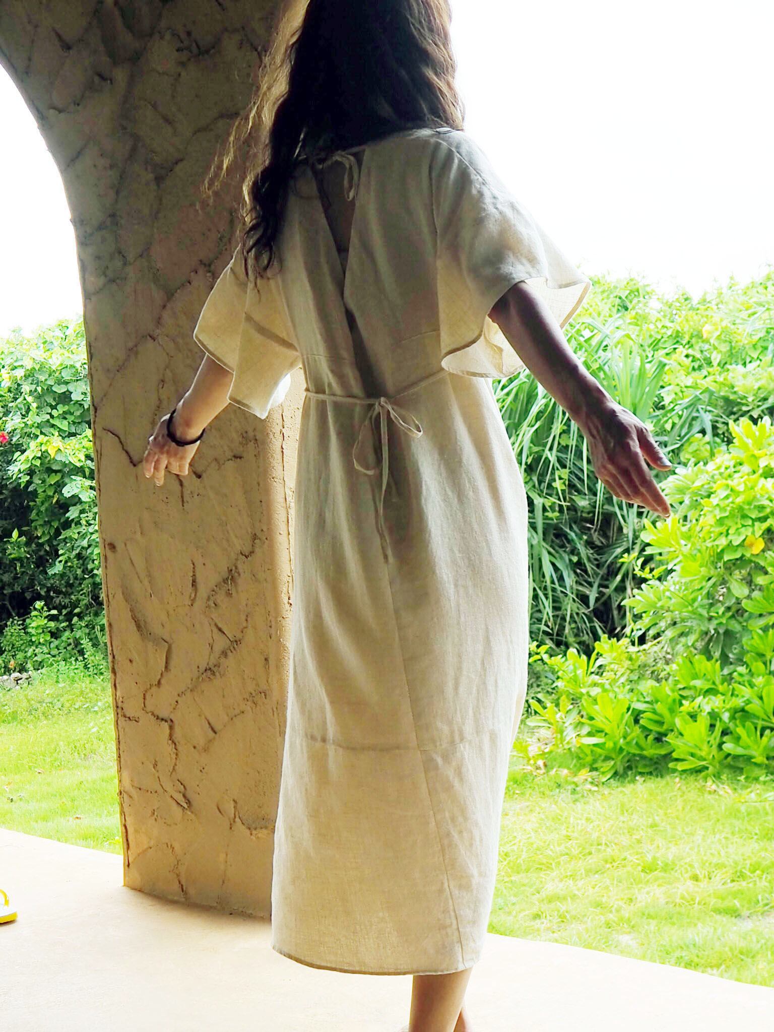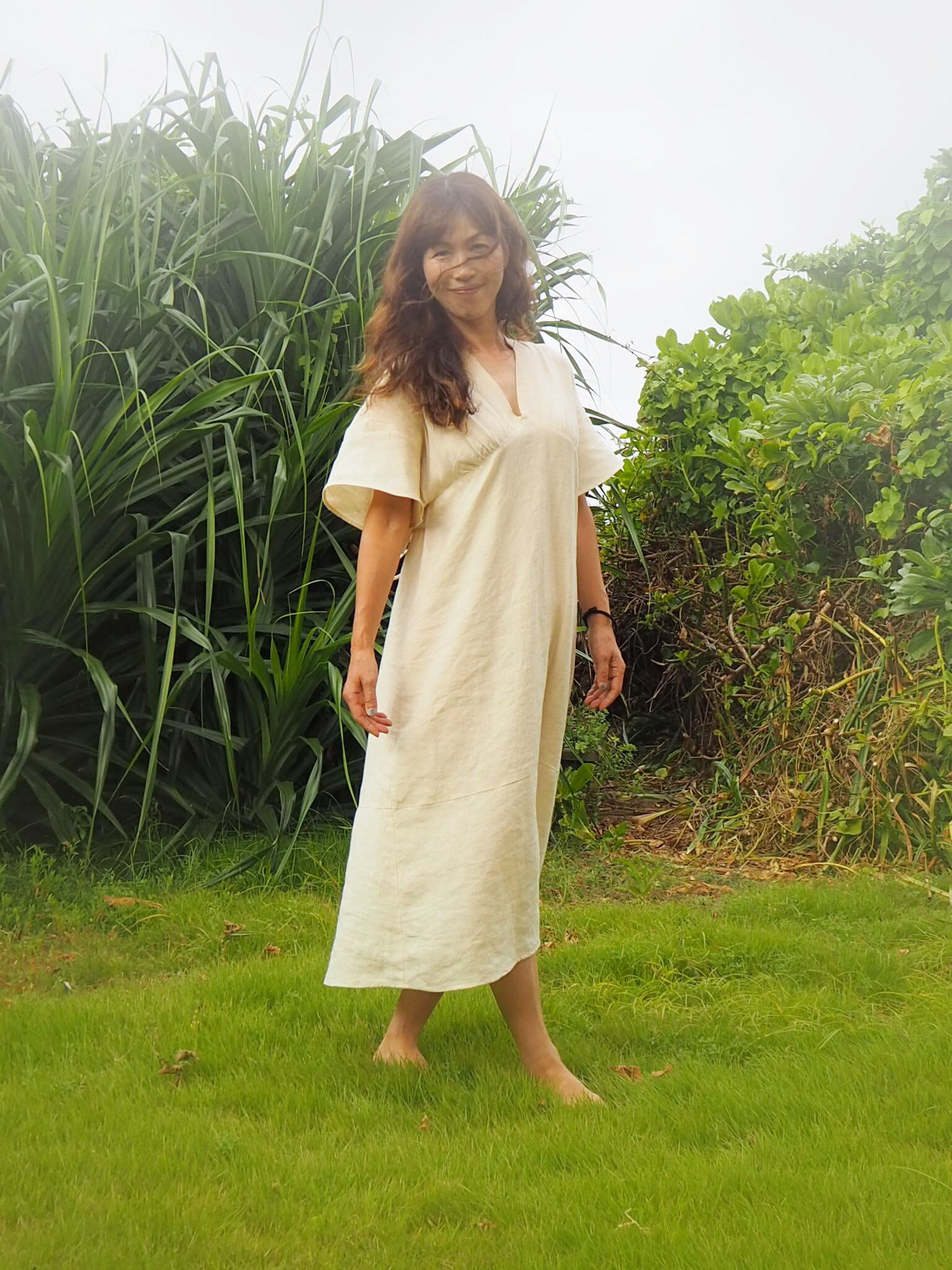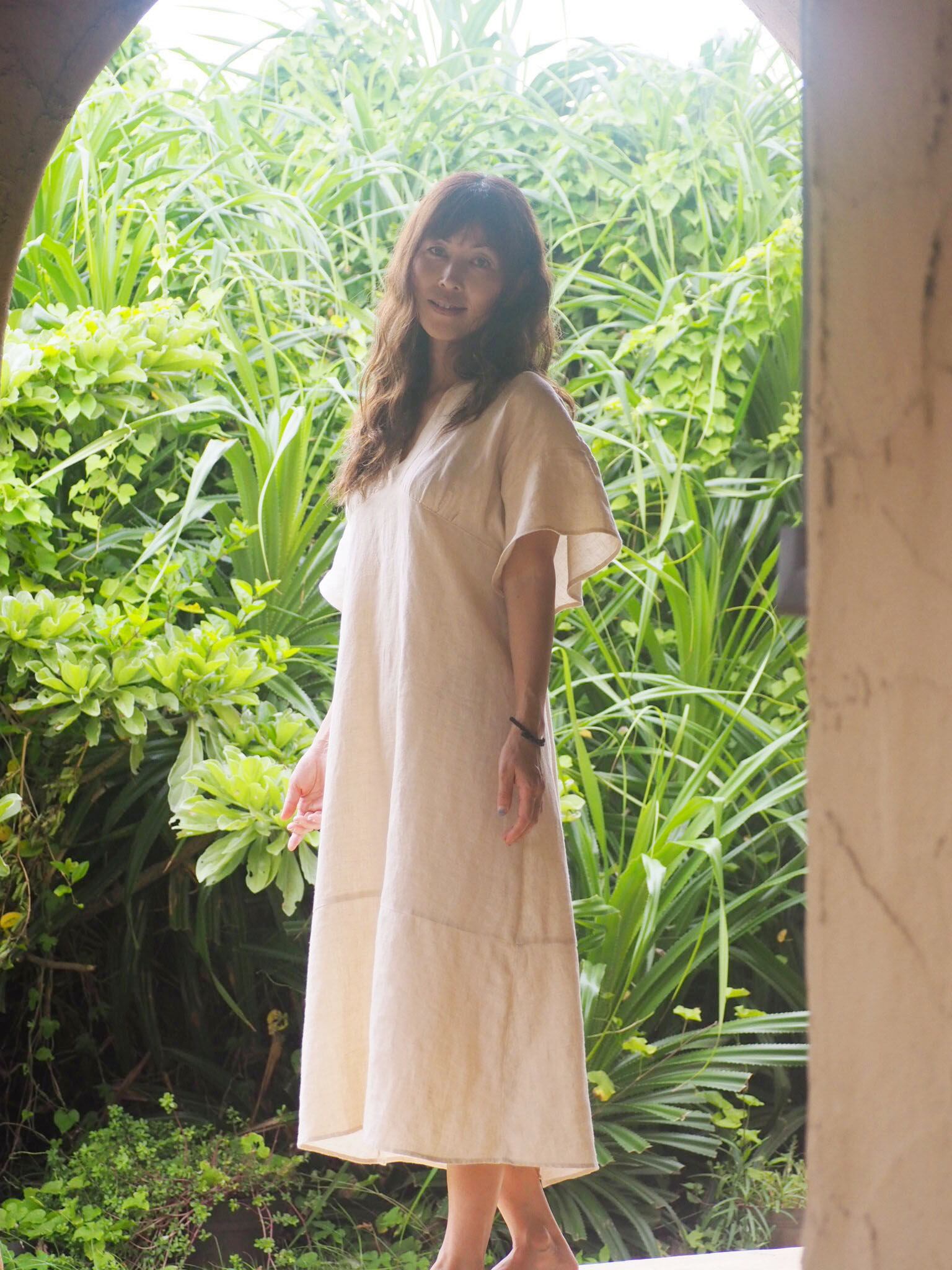 《アマリリス OP ヘンプ麻100%》フレンチ袖ワンピース