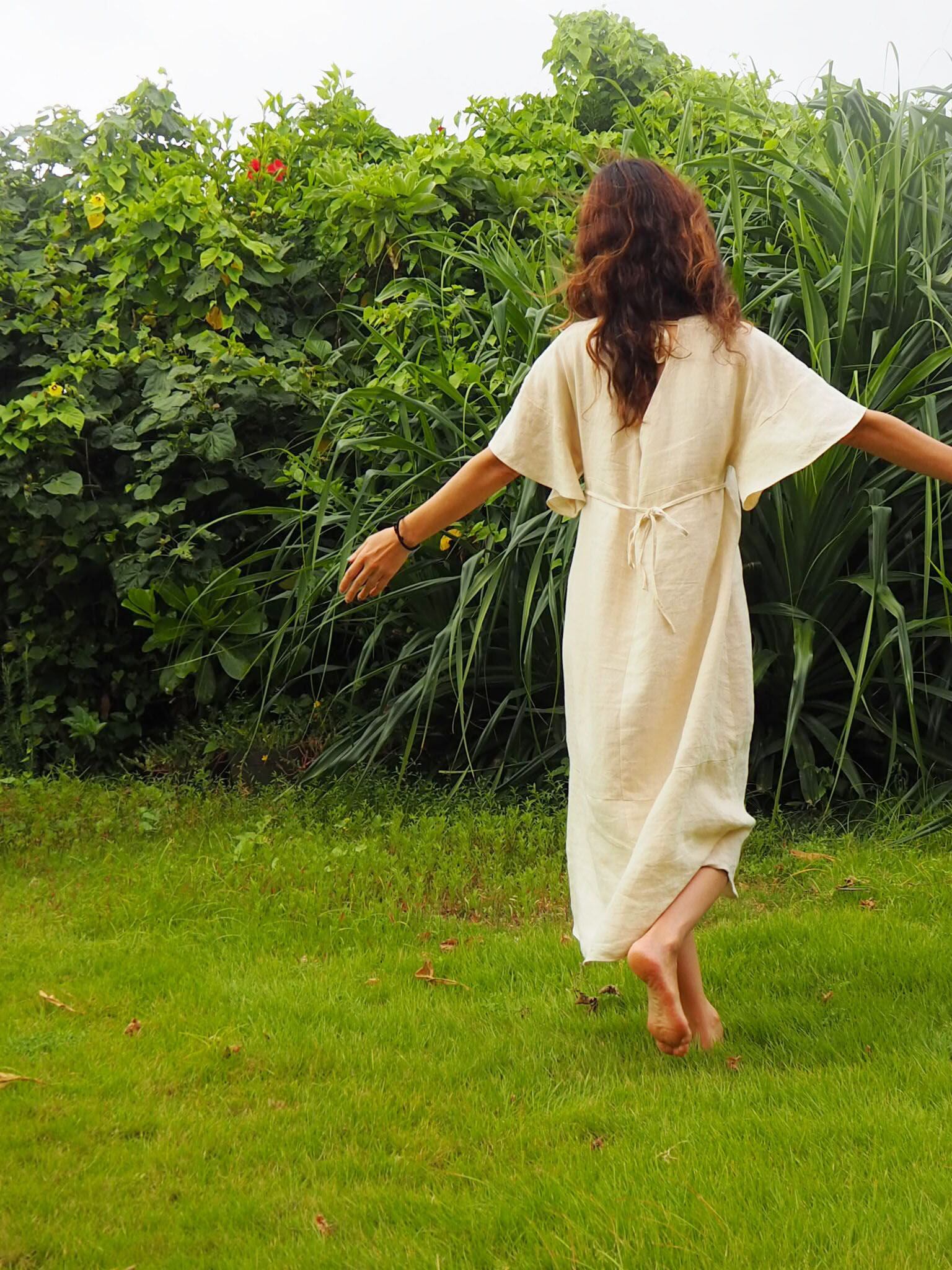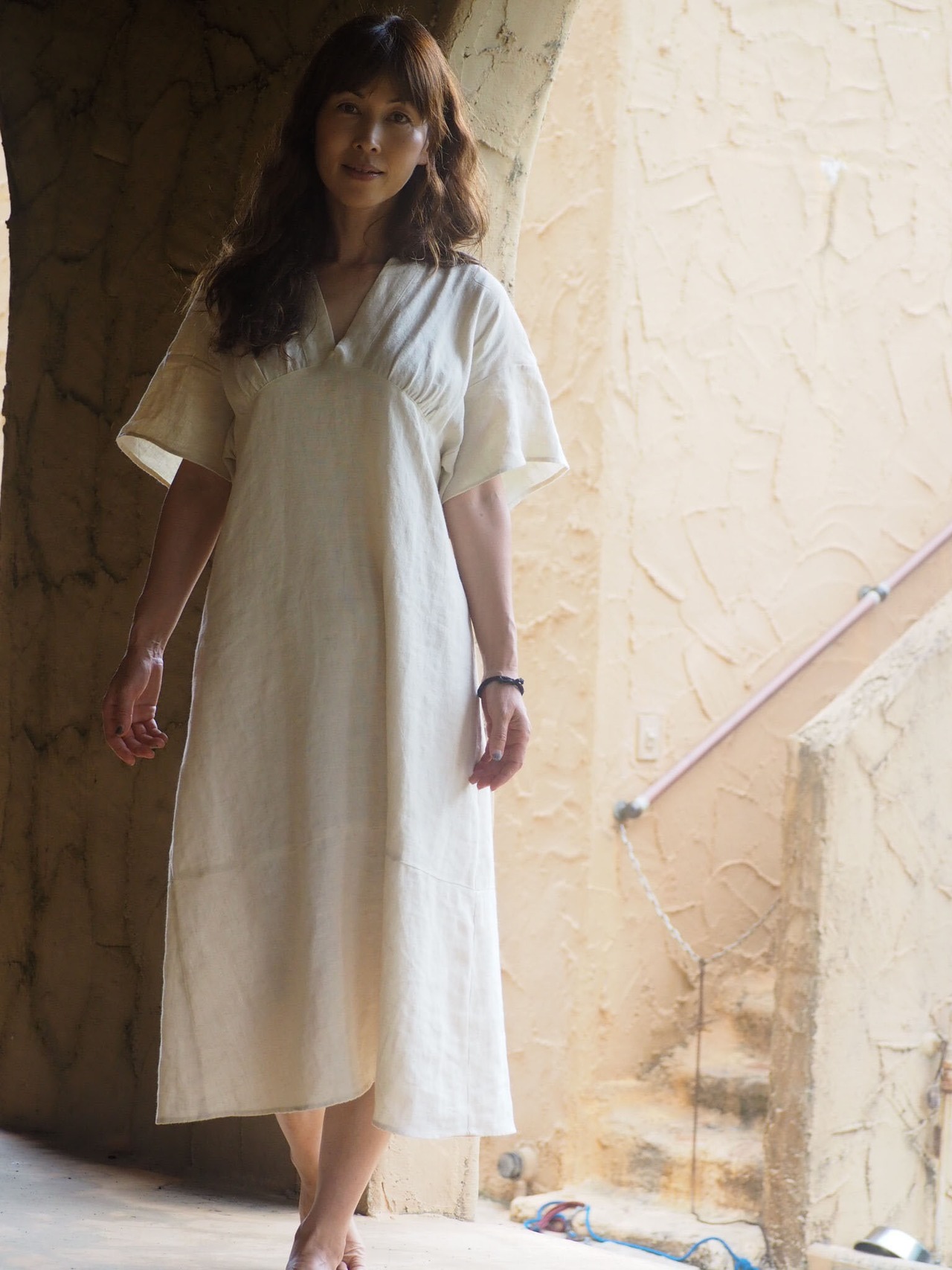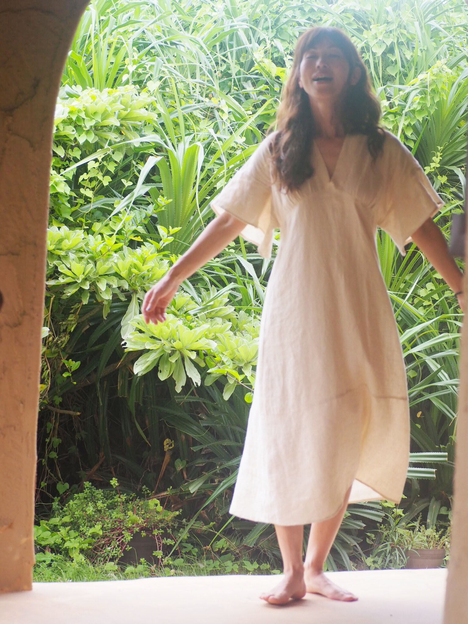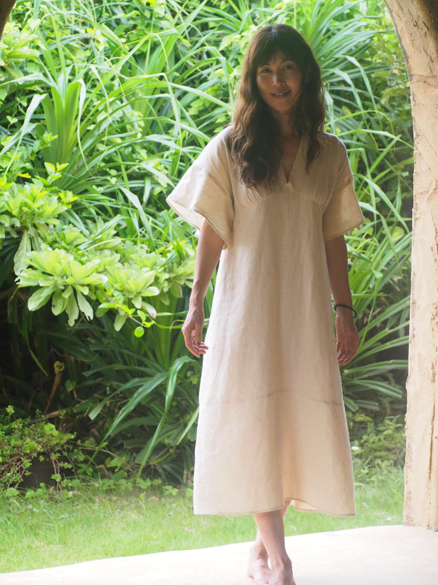 《アマリリス OP ヘンプ麻100%》フレンチ袖ワンピース