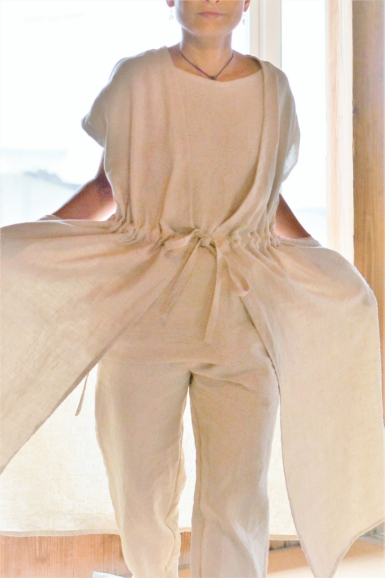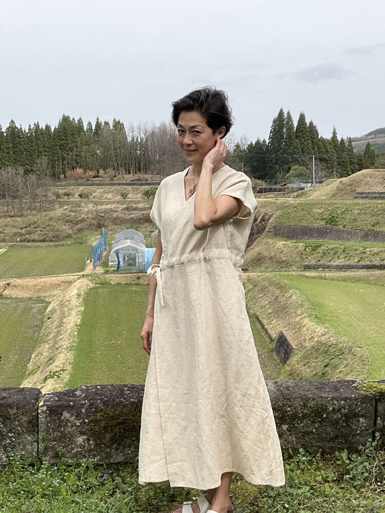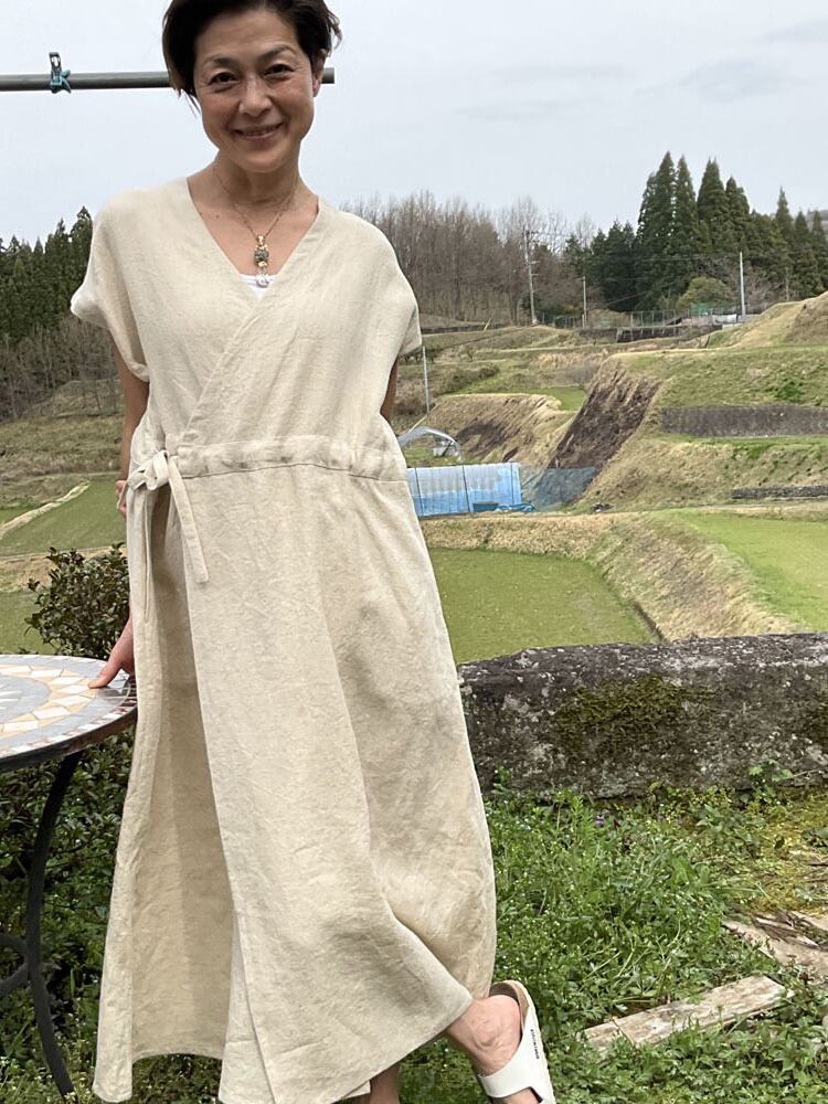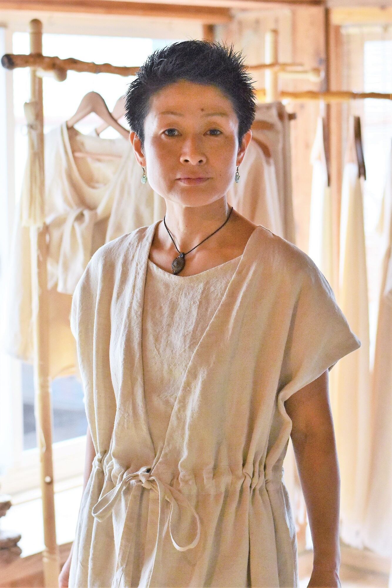 ヘンプ麻100%の天然素材が、肌に優しく、オールシーズン快適な着心地を実現。軽やかなシルエットが、動くたびに美しく揺れ、特別な一日を演出します。