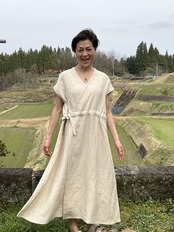 《ライラック OP ヘンプ麻100%》前開きワンピース
