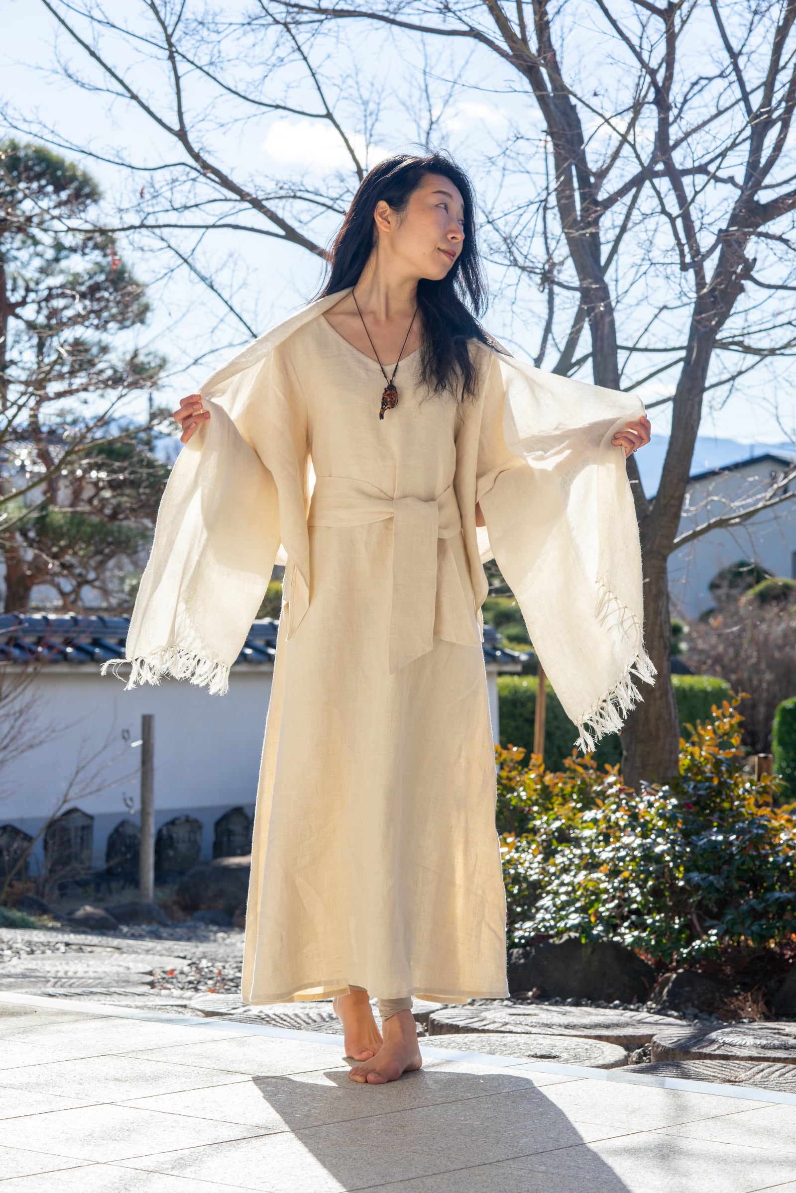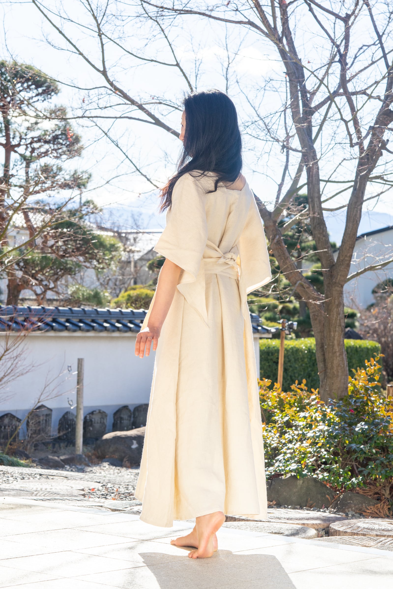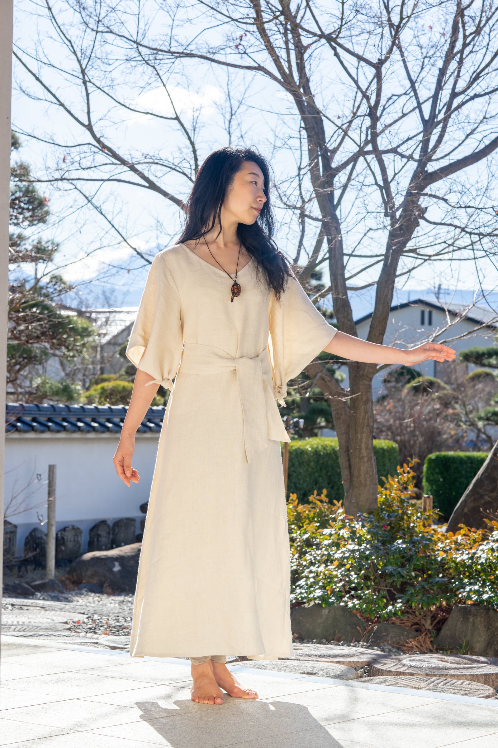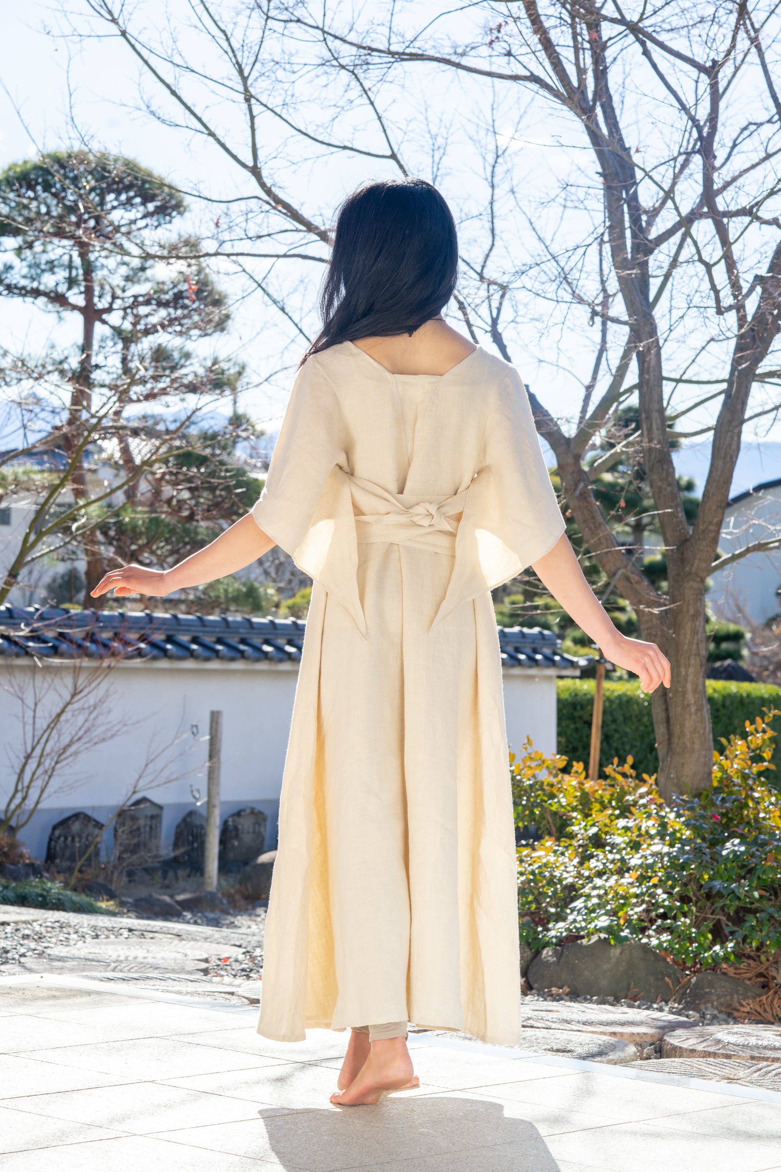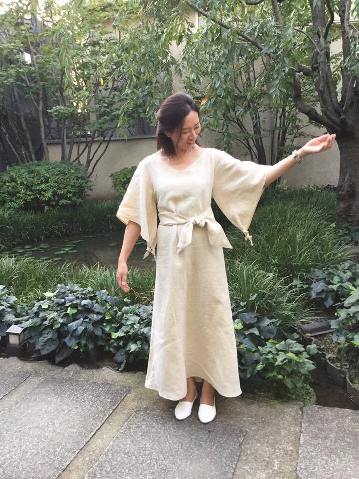 《ミモザアカシア OP ヘンプ麻100%》バタフライ袖ワンピース