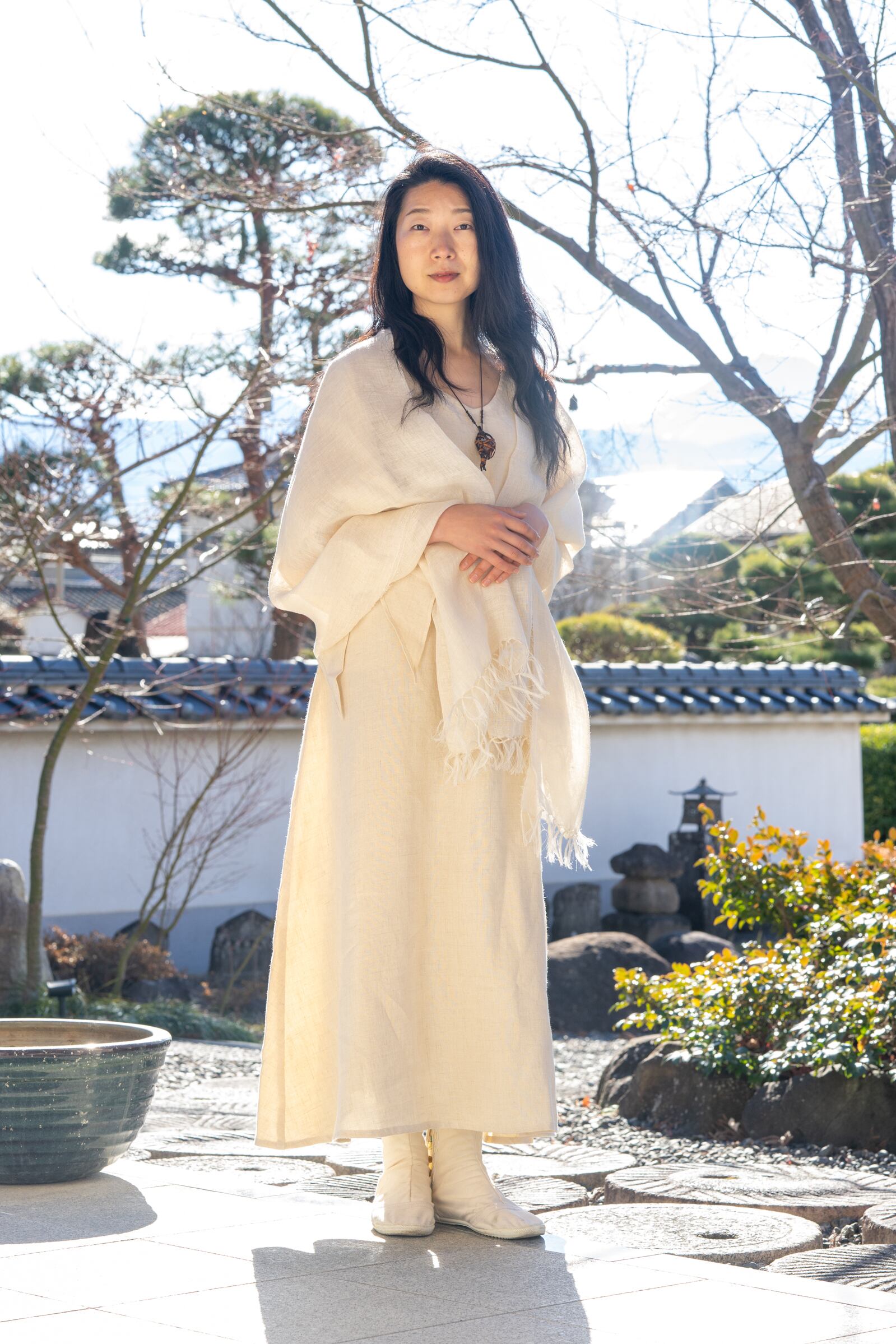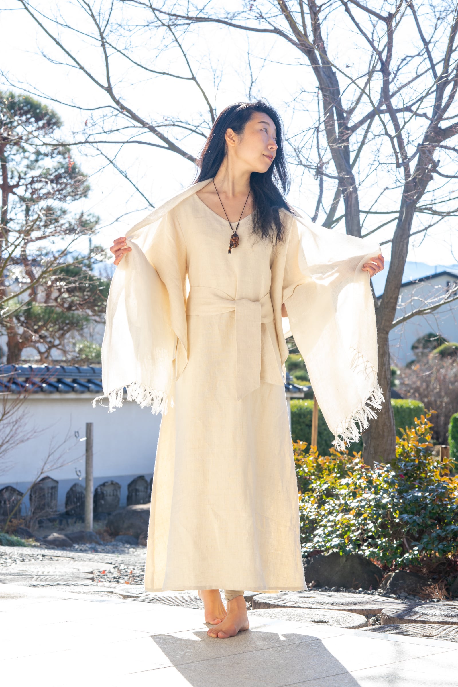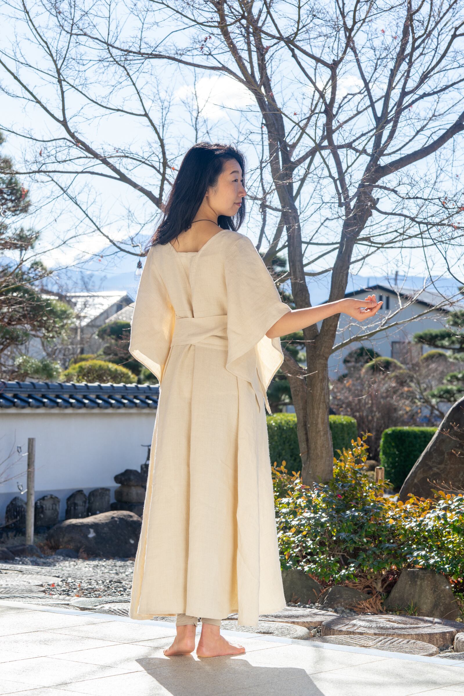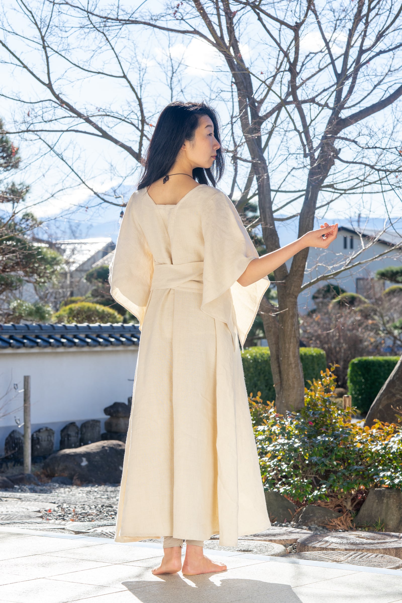《ミモザアカシア OP ヘンプ麻100%》バタフライ袖ワンピース