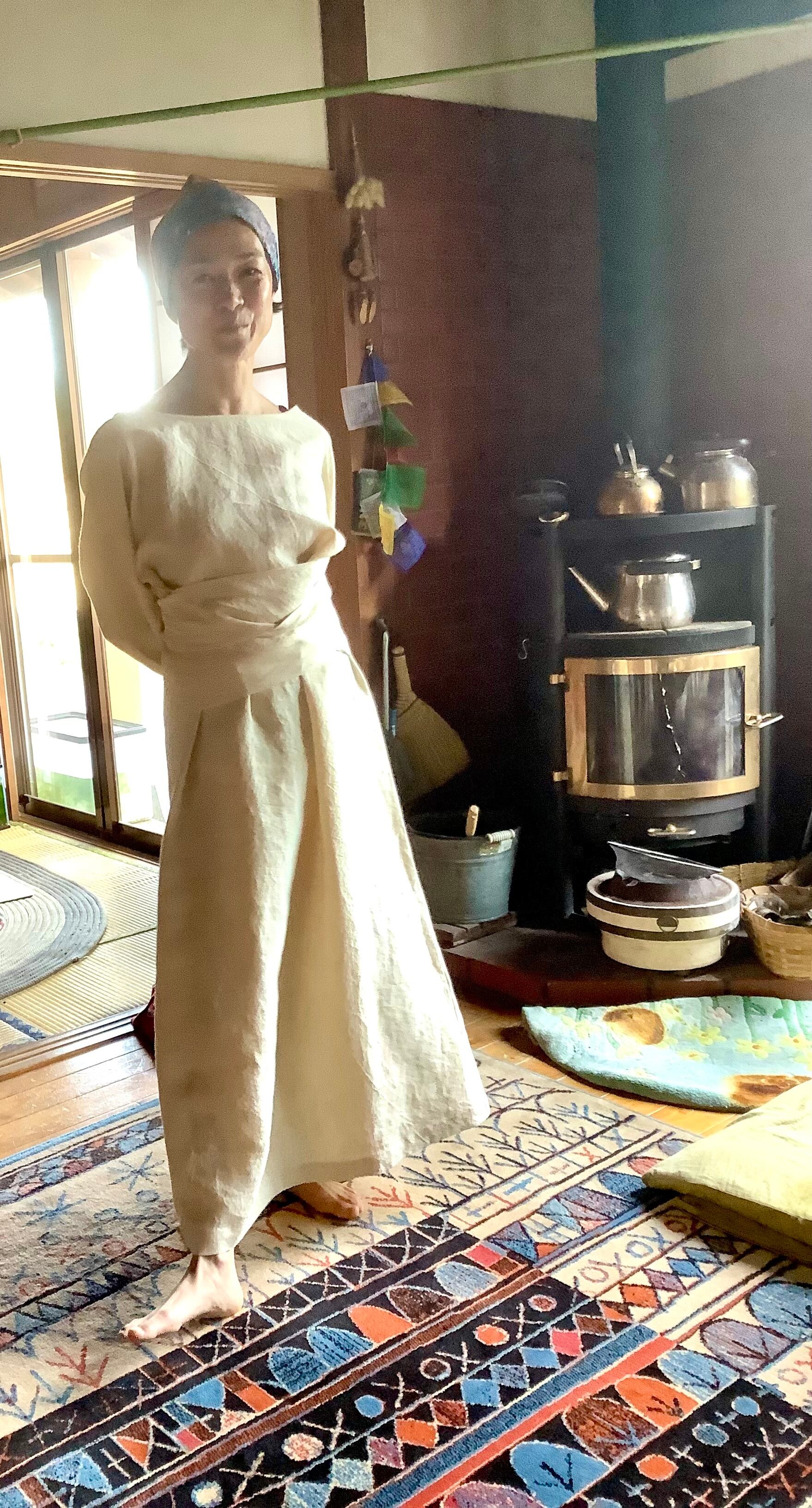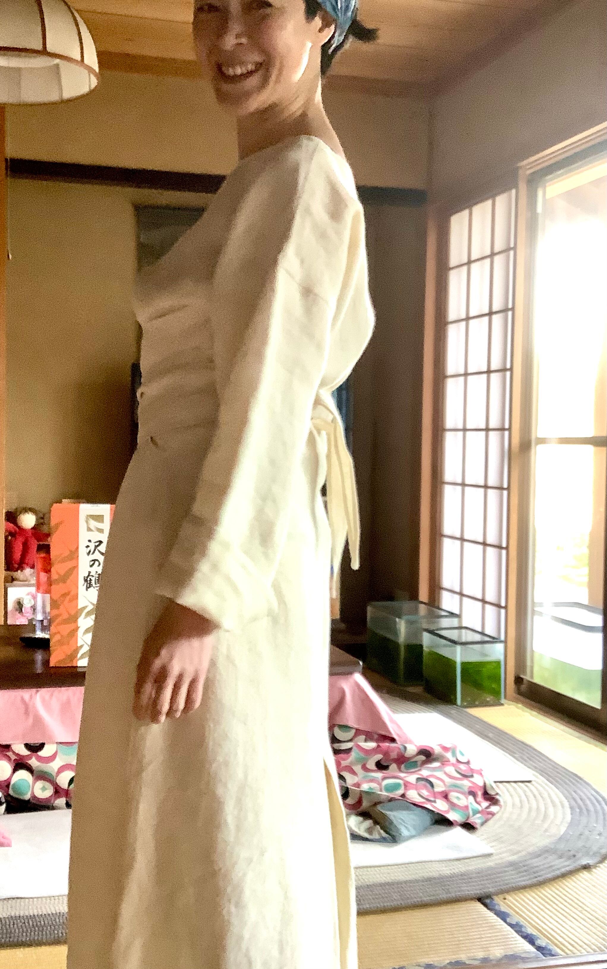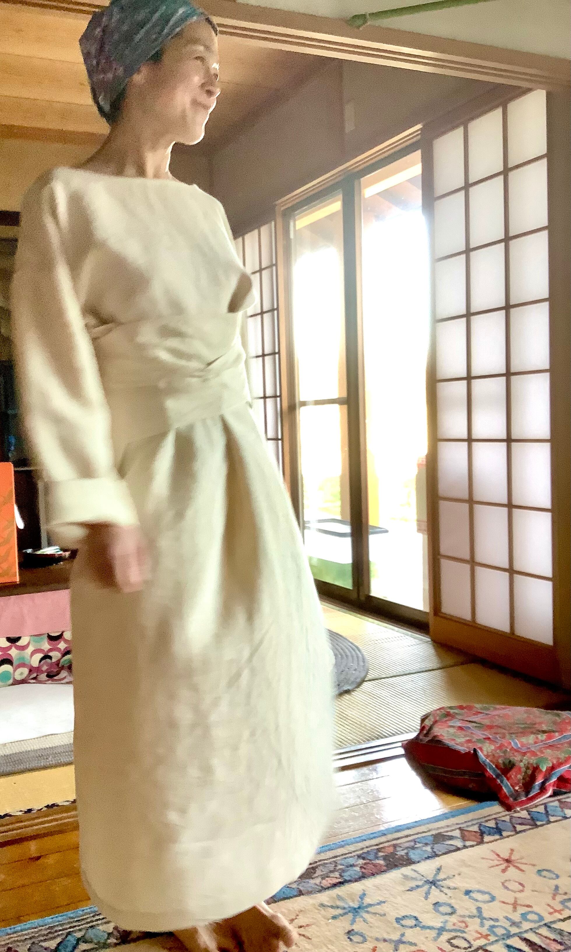 《デージーOP ヘンプ麻100%》ウエストマーク長袖ワンピース