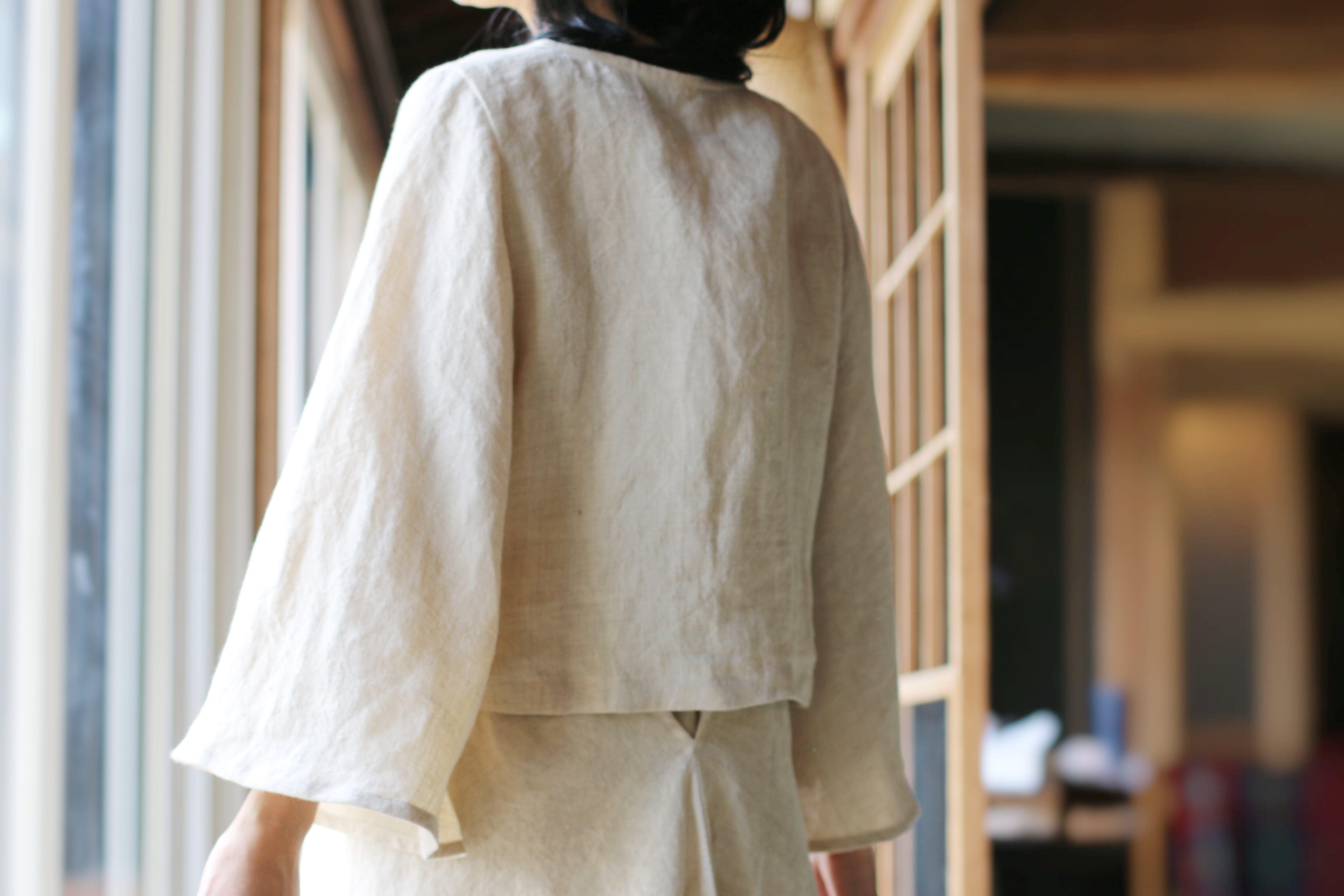 《チューリップ BL ヘンプ麻100%》胸結びチューリップ袖ブラウス