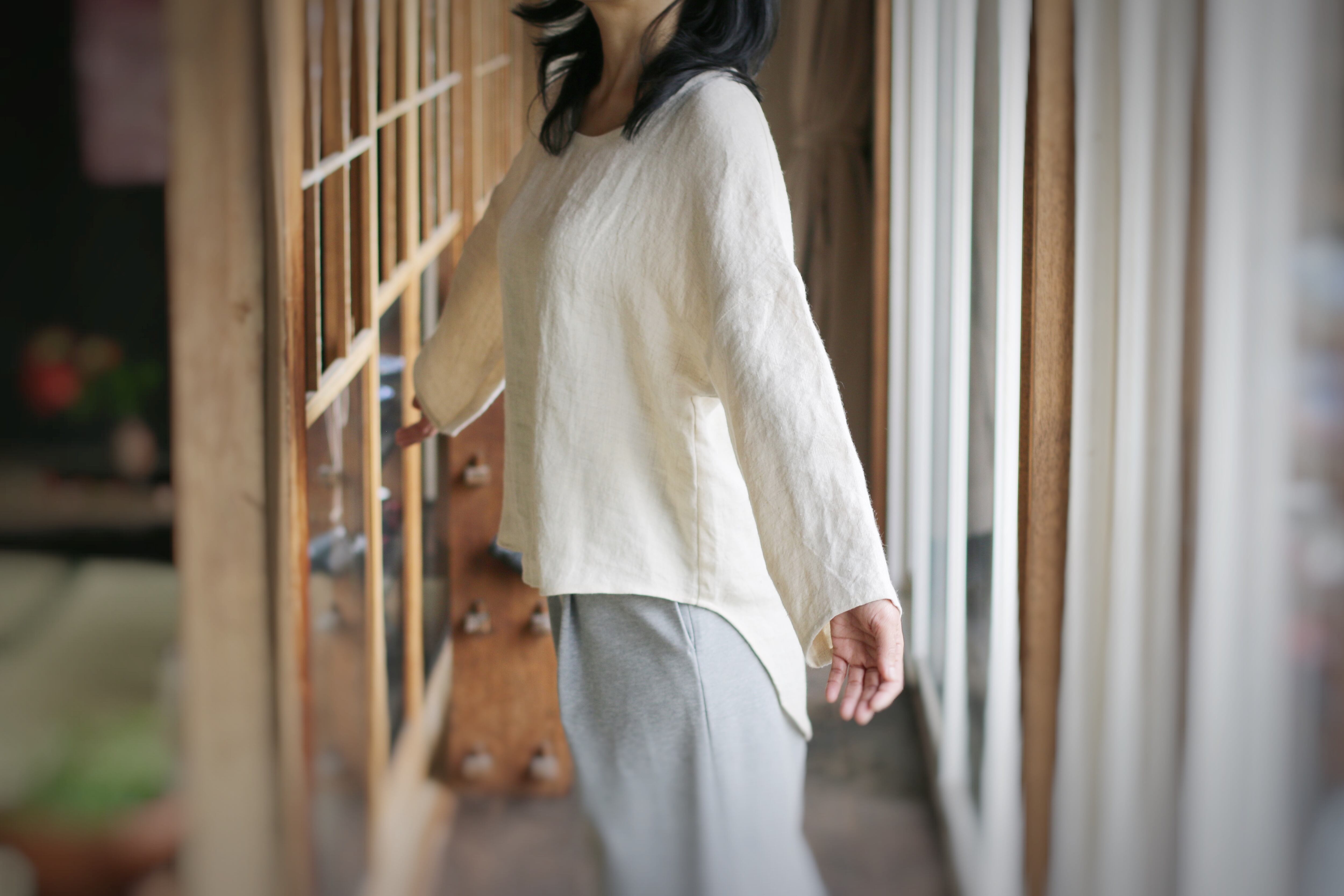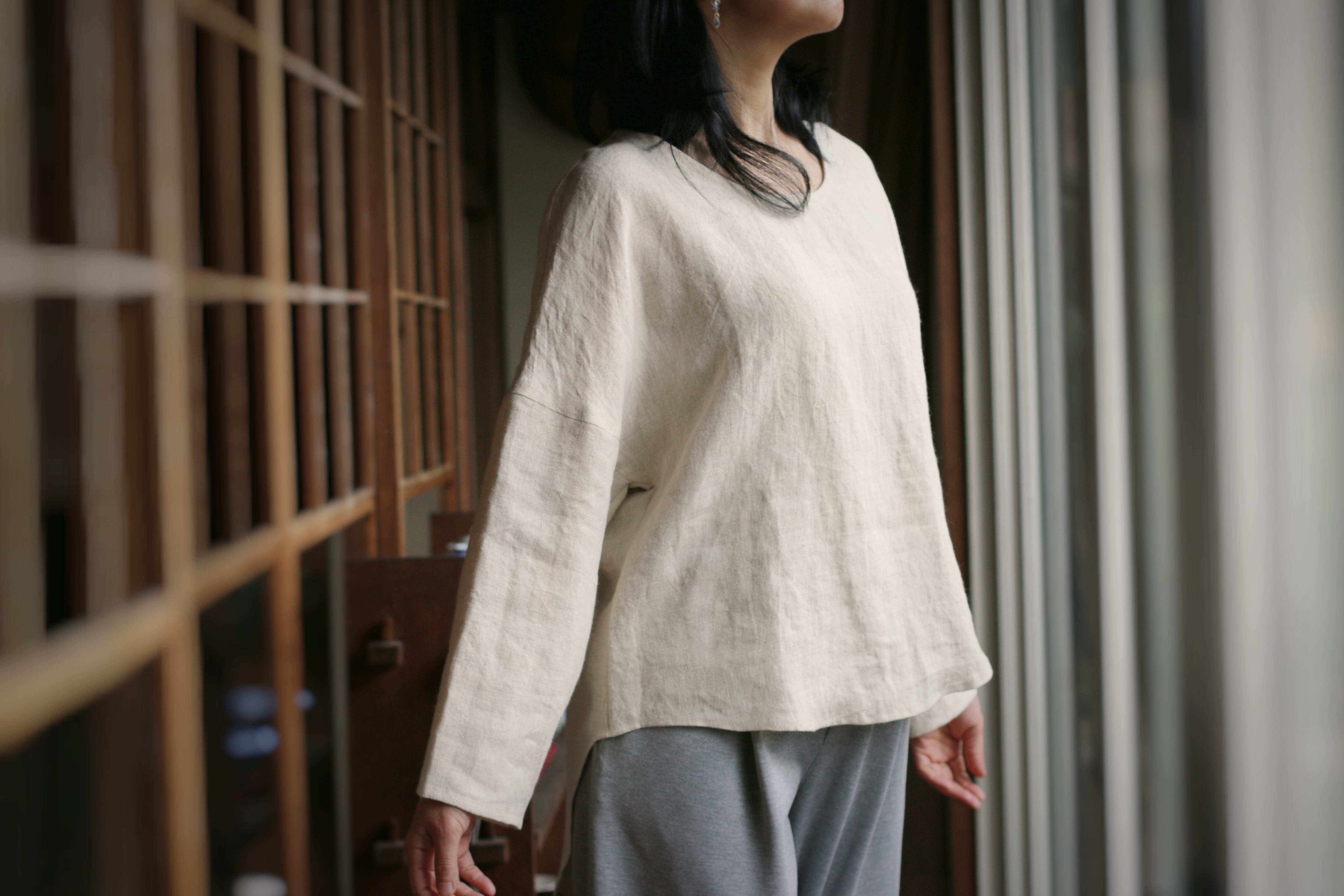 《カモミール BL ヘンプ麻100%》長袖プルオーバーブラウス