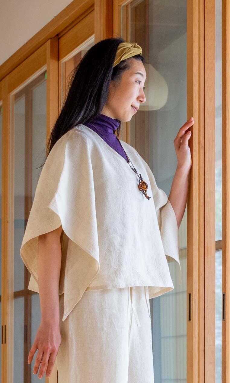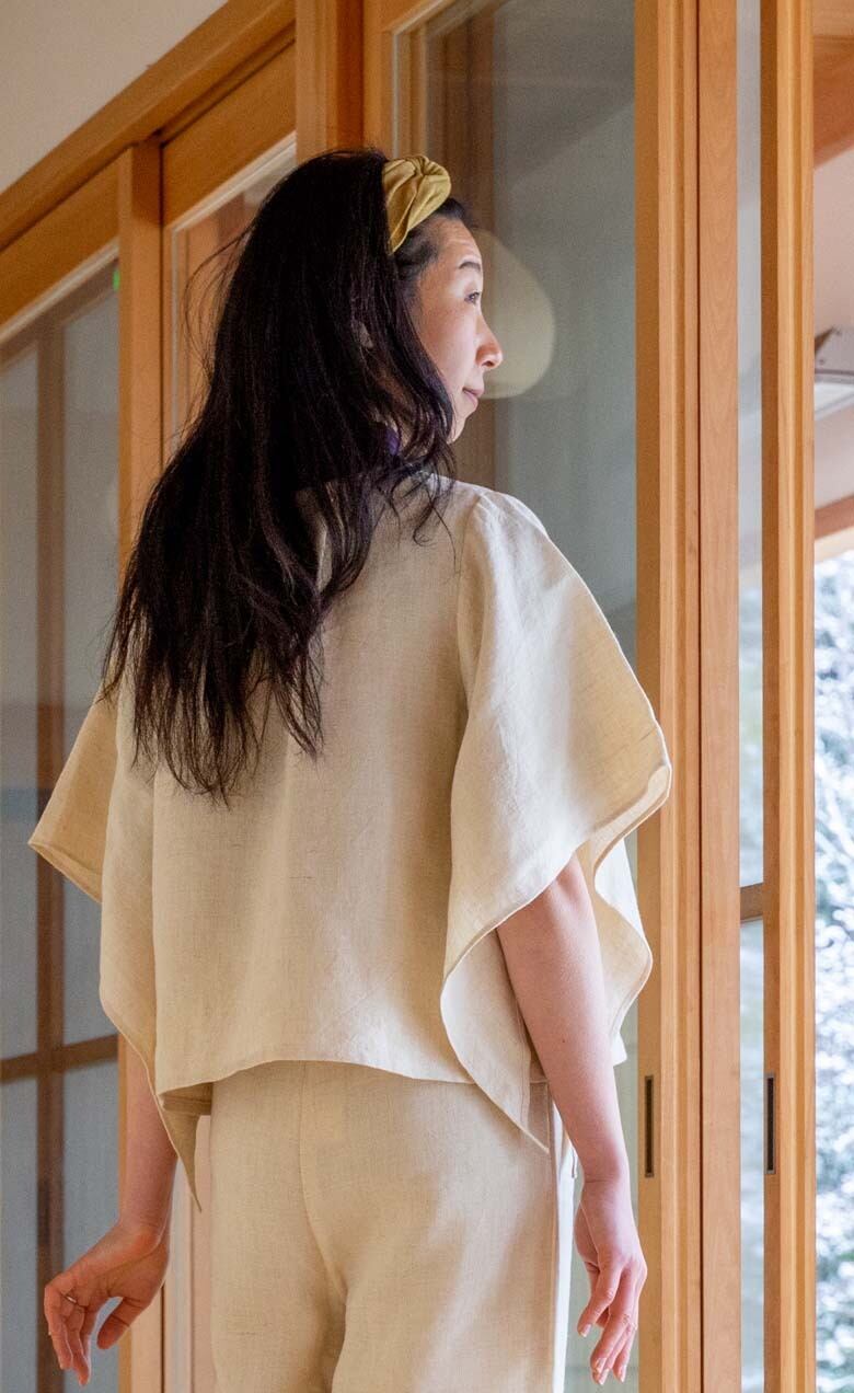 《やまぶき BL ヘンプ麻100%》バタフライ5分袖ブラウス