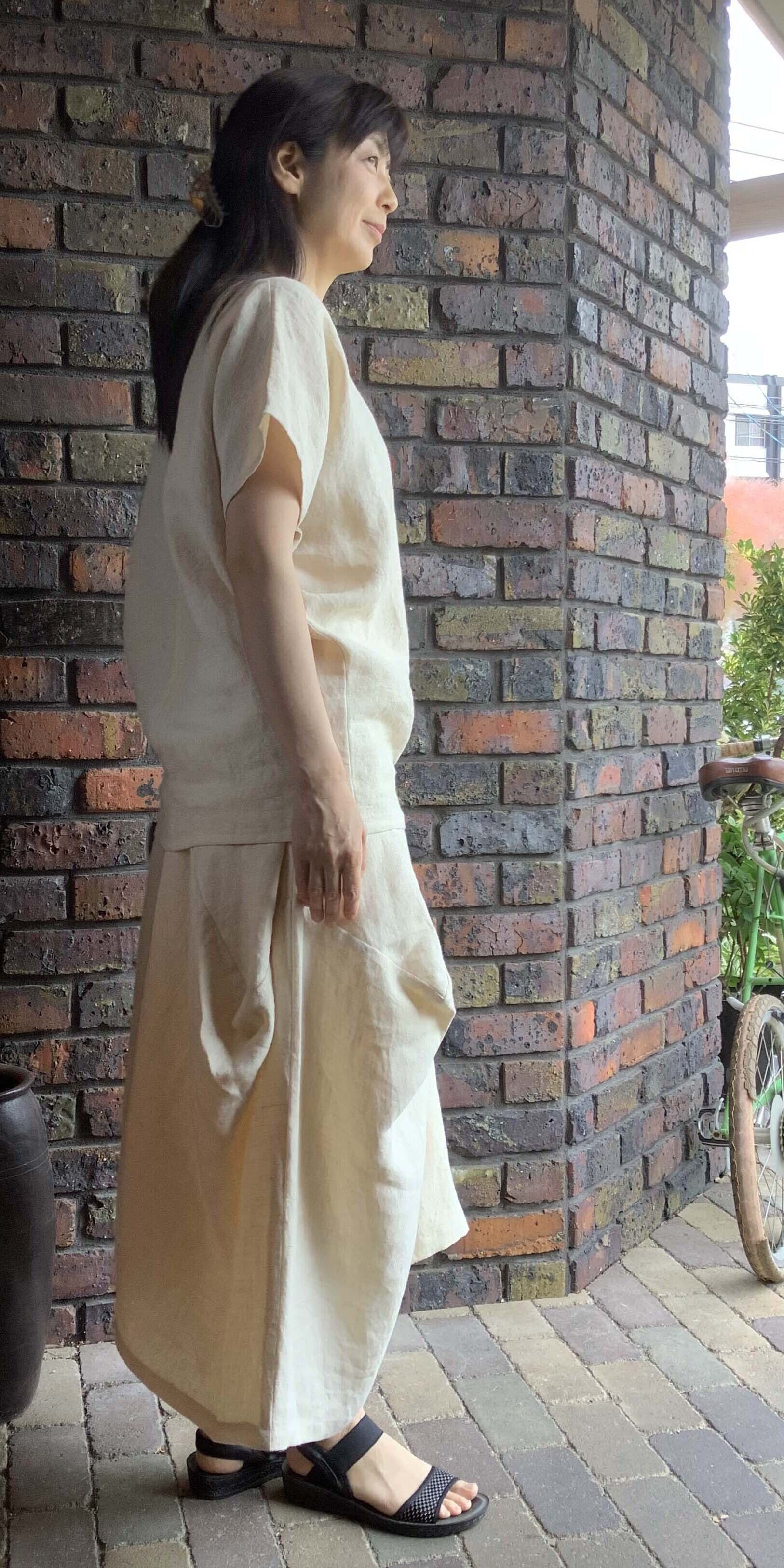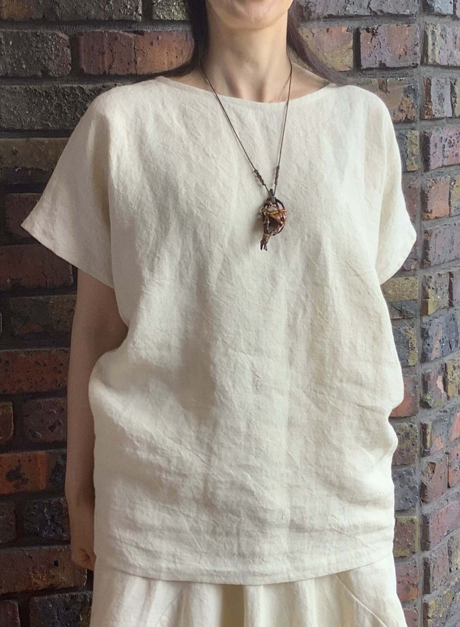 《ニチニチソウ BL ヘンプ麻100%》ドルマン半袖チュニック