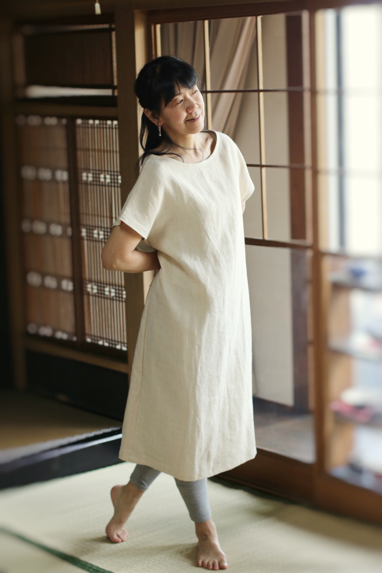 《忘れな草 OP ヘンプ麻100%》 フレンチスリーブOP